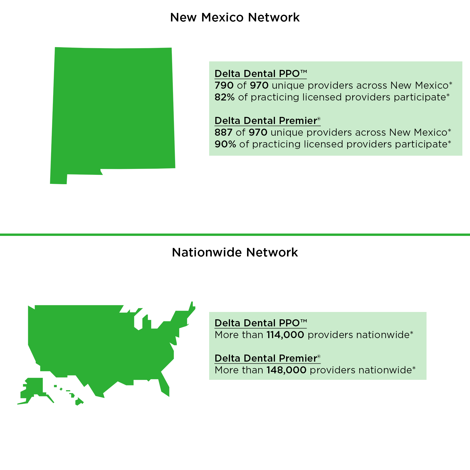Delta Dental offers two proprietary networks: Delta Dental PPO™ and Delta Dental Premier®. Putting these two networks together provides wide-ranging access to care as well as out-of-pocket savings for your employees.